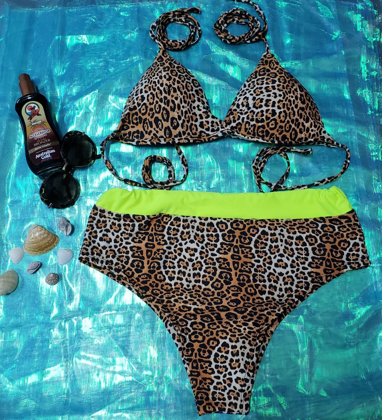 Biquíni frente única onça com faixa verde