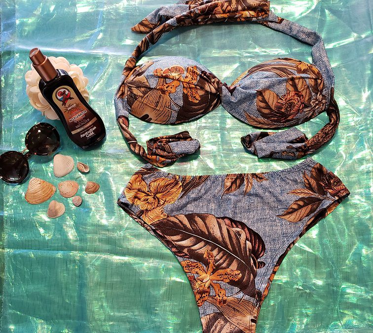 Biquíni torcido folhagens azul