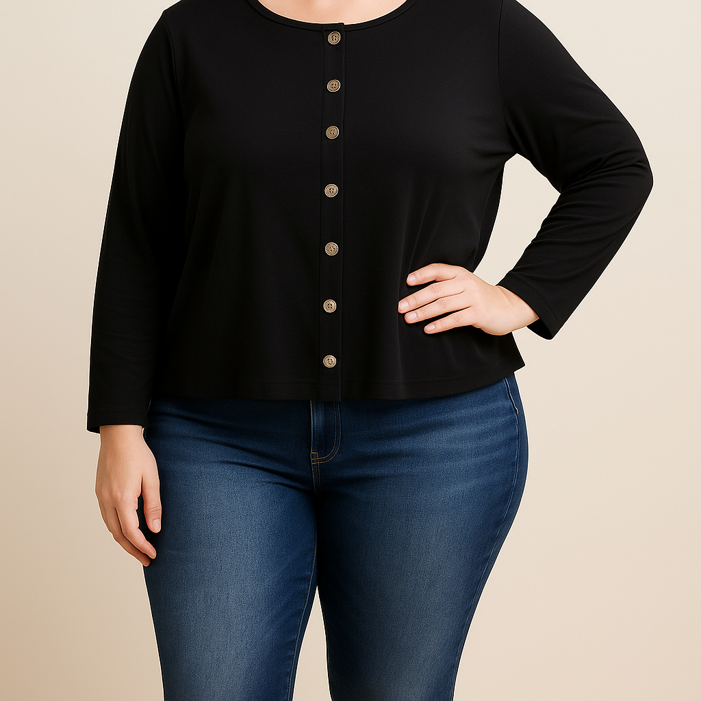Manga longa malha de botões